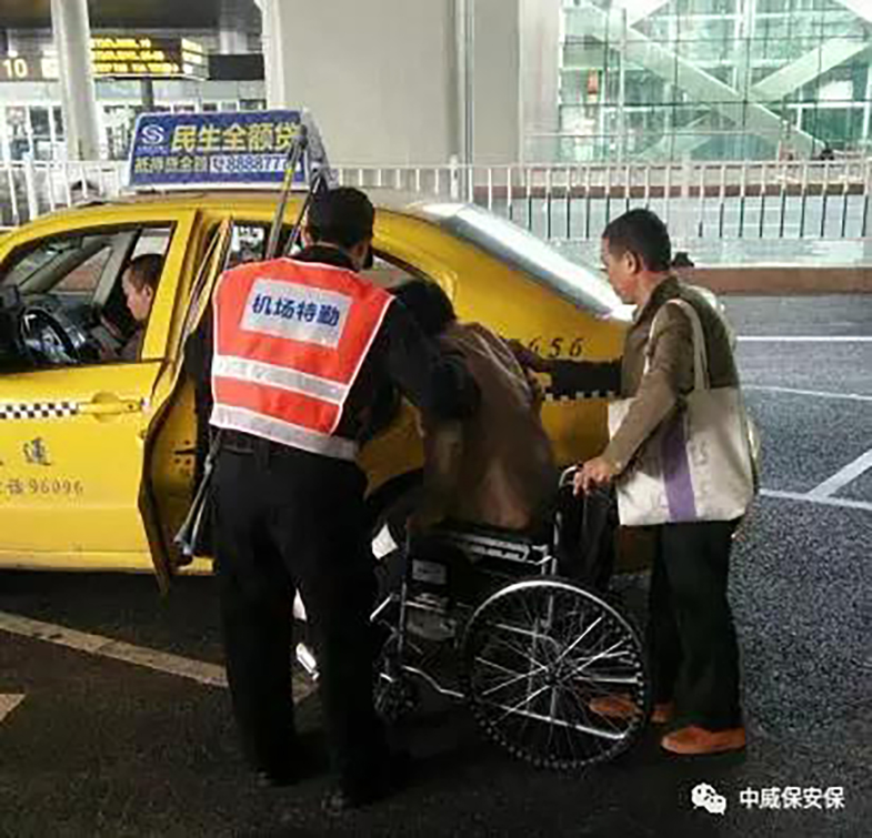 11月15日上午10點(diǎn)30分左右,中威保機(jī)場大隊(duì)特勤人員在T3出租車站臺執(zhí)勤時發(fā)現(xiàn)一位乘客正推著一位坐在輪椅上的阿姨準(zhǔn)備乘車。只見,該乘客挎著沉重的大包一邊開車門,一邊試圖將輪椅上的阿姨抱進(jìn)車內(nèi)。由于行李過多,行動不便,阿姨一直未成功坐上車。中威戰(zhàn)士李秀官、張兆信、羅玉彬見狀立即上前幫助乘客將輪椅上的阿姨抬進(jìn)車內(nèi),并將輪椅收疊好放入出租車后備箱......